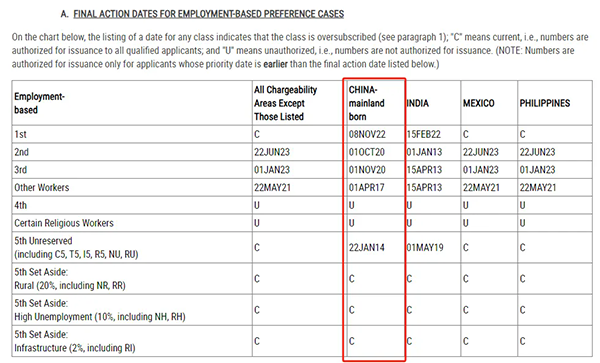 中国大陆申请人 EB-1: 2023年1月1日,无变化;