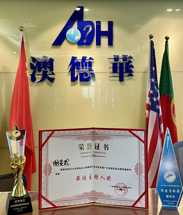 澳德华获得广东省因私出入境协会“优秀单位”奖