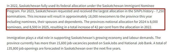 连续三年逐年递增,可见萨省在吸纳移民上的决心。同时,萨斯喀彻温省正在经历创纪录的人口增长,并正在朝着到2030年达到140万居民的目标前进。另外,萨省官方表示,加拿大联邦政府已同意减少处理萨省省提名计划的重复工作以提高审批效率。
